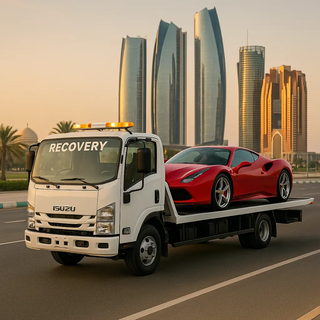 خدمة ريكفري سيارات في أبو ظبي على مدار الساعة مع وقت وصول مؤكد وتواصل واضح. تغطية الشامخة، المصفح، السمحة، الشوامخ، مدينة محمد بن زايد، الكورنيش، جزيرة ياس والسعديات.